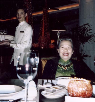 Vào thang máy lên tầng 2 của Shangrila, tấm biển đập vào mắt tôi giới thiệu cửa hàng ăn Việt Nam "Hội An - Vietnamese cuisine". Mùi xào nấu quen thuộc thơm phức, hấp dẫn. Mấy cô gái Việt mặc áo dài lụa màu vàng chanh, đi lại tiếp khách, dáng uyển chuyển dịu dàng. Một anh mặc sơ mi trắng, đeo biển trên ngực mang tên Đỗ Văn Dương, chạy đến bàn chúng tôi.