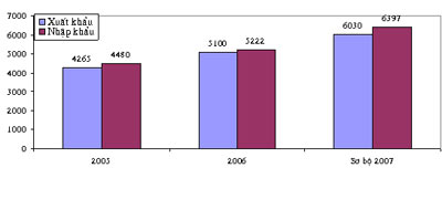 Thứ ba, trong xuất, nhập khẩu dịch vụ, Việt Nam vẫn ở vị thế nhập siêu. Năm 2005 nhập siêu 215 triệu USD, năm 2006 nhập siêu 22 triệu USD, năm 2007 nhập siêu 367 triệu USD. Những yếu tố làm mất cân đối cán cân xuất, nhập khẩu dịch vụ gồm có cước phí I, F hàng hóa nhập khẩu do nước ngoài thu được ở mức rất lớn và tăng nhanh qua các năm (năm 2005 là 1.509 triệu USD, năm 2006 là 1.812 triệu USD, năm 2007 ước 2.482 triệu USD); dịch vụ bảo hiểm xuất khẩu chỉ có 65 triệu USD, nhưng nhập khẩu lên đến 210 triệu USD; dịch vụ khác xuất khẩu có 277 triệu USD, nhưng nhập khẩu lên tới 1.030 triệu USD. Điều đó chứng tỏ sự vươn lên và sức cạnh tranh trong lĩnh vực dịch vụ của doanh nghiệp Việt Nam còn yếu, nhiều loại và thị phần đã rơi vào tay những doanh nghiệp, tổ chức ngoài nước.