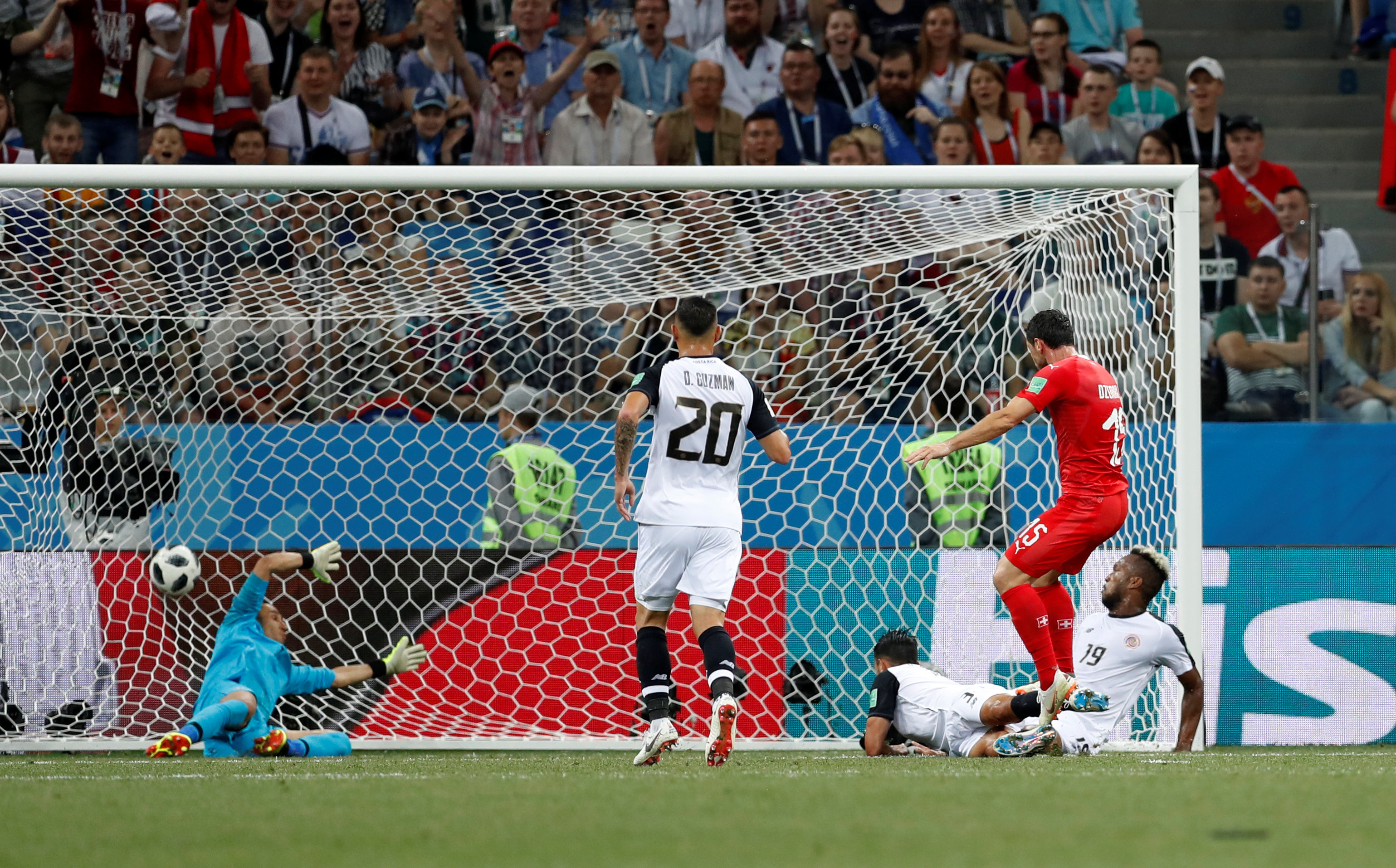 Dù bị dẫn 2-1 khá đáng tiếc ở phút 88 sau pha ghi bàn của Josip Drimic, nhưng Costa Rica vẫn không từ bỏ và đã có bàn gỡ ở phút 90+3, sau quả 11m của Bryan Ruiz dội xà bật vào người thủ môn Sommer vào lưới.
