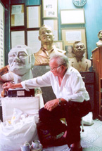 Nhà điêu khắc Tô Sanh bên cạnh những chân dung mà ông tạc