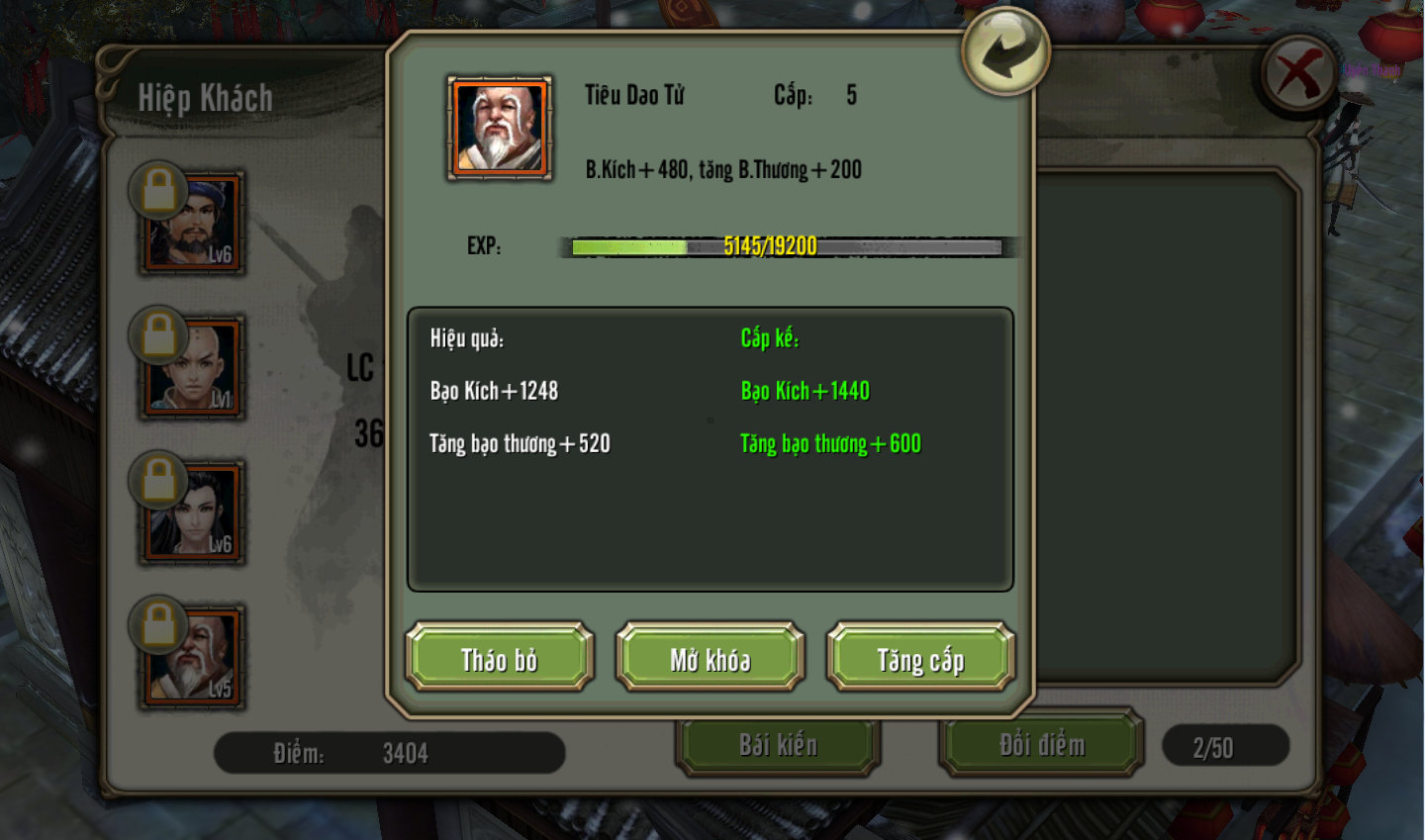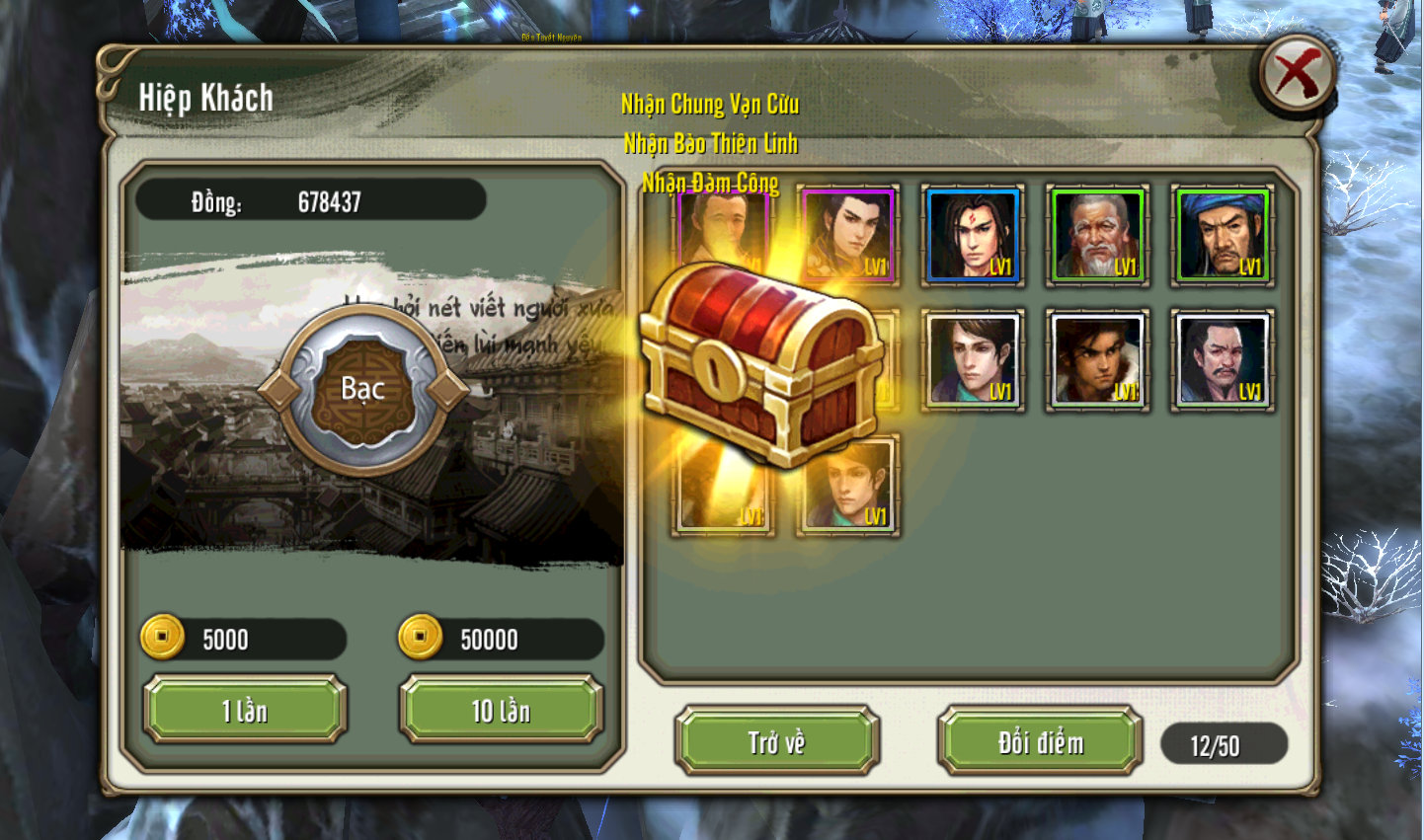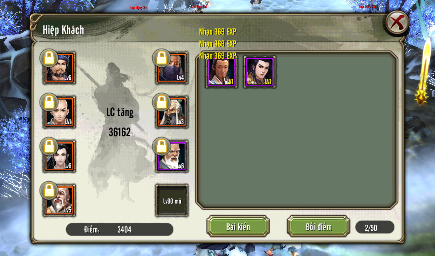 - Để dành điểm tích lũy: Cứ mỗi lần bái kiến hiệp khách, người chơi sẽ được tích lũy một lượng điểm nhất định có thể dùng để đổi lấy các cao thủ nhất lưu có phẩm chất mạnh.