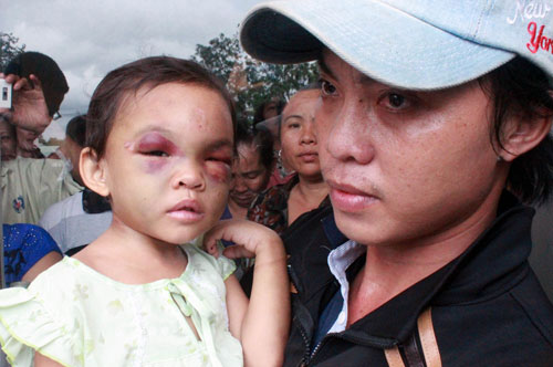 Nhìn hình ảnh bé Đỗ Thị Kim Ngân, 4 tuổi, đang điều trị vết thương trong bệnh viện với khuôn mặt sưng húp, tụ máu, người đầy vết sẹo mà người viết không khỏi cầm lòng… Các bác sĩ cho hay, bé Ngân đã tỉnh nhưng do bị xuất huyết dưới nhện, một loại chấn thương sọ não, nên cần phải theo dõi thêm.