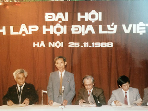 GS Lê Bá Thảo (thứ hai từ trái qua) tại Đại hội thành lập Hội Địa lý Việt Nam (1988) - Ảnh: tư liệu gia đình |