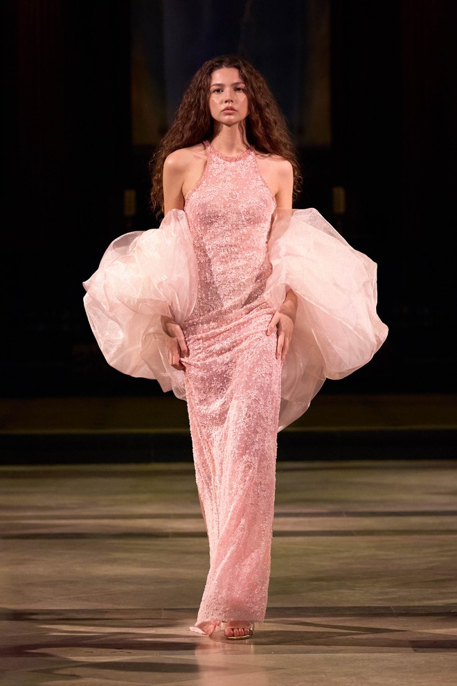Bảng màu mang tính chuyển hóa, gợi nhắc sự kết nối thiên nhiên, bền vững và sức sống tái sinh gồm trắng kem, hồng nhạt... bên cạnh các sắc độ khẳng định cá tính và chiều sâu tinh thần như đen, vàng gold...
