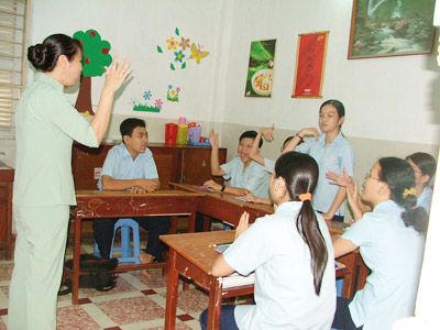 "Sáng nay lúc mọi người tập thể dục, cô thấy hai em L. và Q. nói chuyện riêng!", "Dạ, ơ... ơ...", "Như vậy theo các em có tốt không?", "Không tốt ạ! Vì làm gương xấu cho bạn khác"... Chứng kiến một buổi sinh hoạt xã hội tại một trường khiếm thính, tôi không khỏi ngạc nhiên khi thấy một số học sinh lớp 6, lớp 7 cố gắng hết sức để trả lời những câu hỏi của cô giáo mà không cầu viện nhiều lắm đến các cử chỉ. Hai em Bình Sơn và Tuyết Nhung (học sinh lớp 6) cùng lúc quay sang tôi "lớn tiếng" hỏi dồn dập: Cô tên chi? Cô bao nhiêu tuổi? Cô làm nghề viết báo hả?... Một em còn lém lỉnh dặn: "Cô nhớ đưa hình tụi em lên báo nha!".