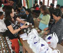 ![]() Blogger Hà Mi (bên trái) cùng các phật tử chuẩn bị các phần quà tặng |