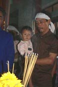 ![]() Anh Cao Xuân Thí ôm con đứng trước bàn thờ vợ |