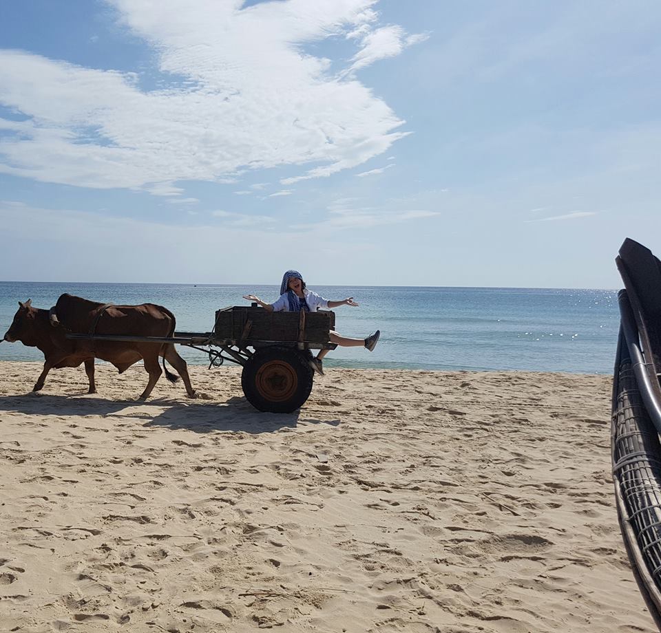 Cô nàng cá tính này còn có những trải nghiệm trên chiếc xe bò dọc bờ biển Mỹ Thủy. Thích khám phá những điều mới mẽ đã trở thành cá tính của cô và đây đồng thời là một điểm cô mang đến cảm hứng âm nhạc.
