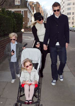 | Bendtner tình tứ cùng Caroline dạo phố với các con của Caroline |