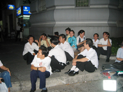 Tại hiện trường, chị Nguyễn Nhất Hạnh (23 tuổi, ngụ ở Q.Bình Thạnh) chưa hết bàng hoàng: "Lúc đó khoảng 17h45, tôi đang ngồi làm việc trong phòng tại lầu 9, không nghe chuông báo cháy. Lúc mọi người trong công ty nghe những tiếng ồn ào lạ bên ngoài tưởng là công ty nào diễn văn nghệ cho nên chạy ra xem. Vừa mở cửa ra mới nghe báo cháy. Sau đó ngửi thấy mùi khét và mùi khói. Gần 100 nhân viên của công ty hốt hoảng bỏ chạy về hướng cầu thang bộ mà không kịp mang theo bất cứ đồ đạc gì, thậm chí cả đồ cá nhân".