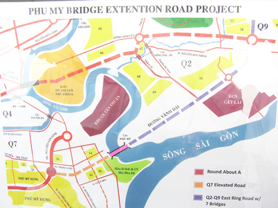 Đó là dự án đường vành đai phía đông (đoạn từ chân cầu Phú Mỹ đến cầu Rạch Chiếc, thuộc Q.2 và Q.9) dài 8,7km, rộng 67m; dự án nút giao thông A Nam Sài Gòn (nối đường trên cao với đường Nguyễn Văn Linh, Q.7) và dự án đường nối từ cầu Phú Mỹ đến nút giao thông A Nam Sài Gòn, dài 1.656m, trong đó có 1.587m đường trên cao có bề rộng 23,7m.