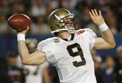 | Tuyển thủ hàng đầu của American Football, tay ném bóng cự phách Drew Brees trong vai trò “quarterback” của đội Saints |