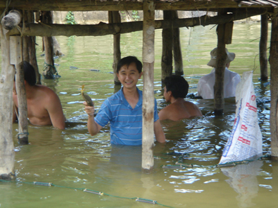 Sau buổi học, các thầy giáo trẻ lại xuống ao bắt cá |