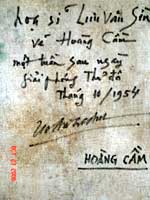 Bút tích của nhà thơ Hoàng Cầm xác nhận về bức tranh của họa sĩ Lưu Văn Sìn |