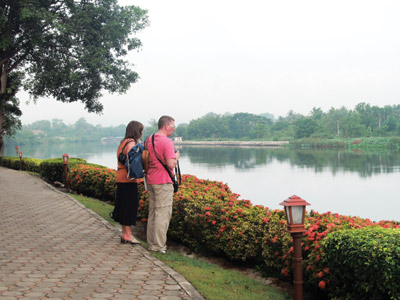 Du khách Pháp trầm tư bên dòng Kwai - Ảnh: Đ.N.K |