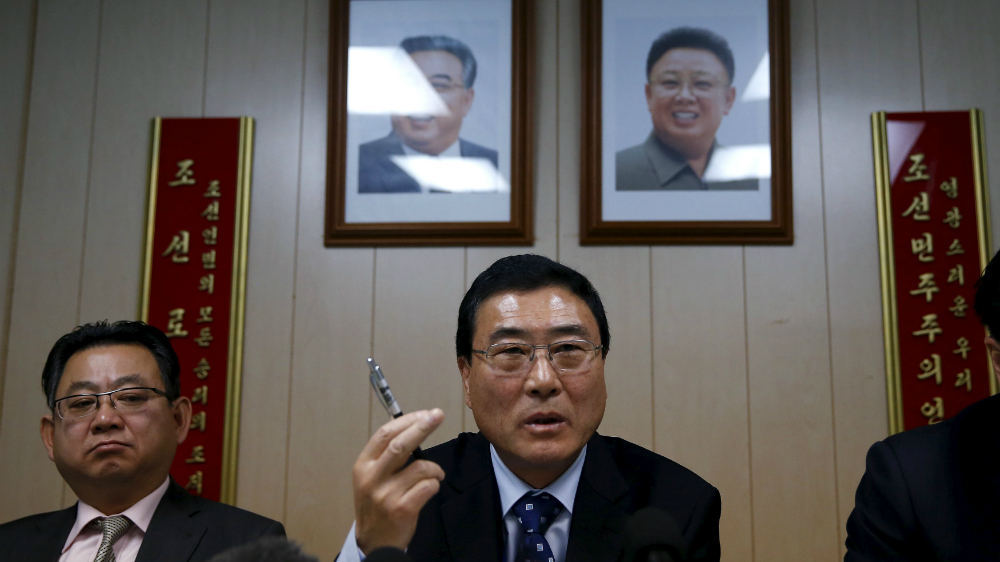 Ông Ri Hung-sik (giữa), đại sứ của Triều Tiên trong cuộc họp báo ở New York hôm 17.11 - Ảnh: Reuters