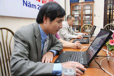 Ông Nguyễn Xuân Phong đang trả lời trực tuyến các câu hỏi của bạn đọc. Ảnh Ngọc Thắng |