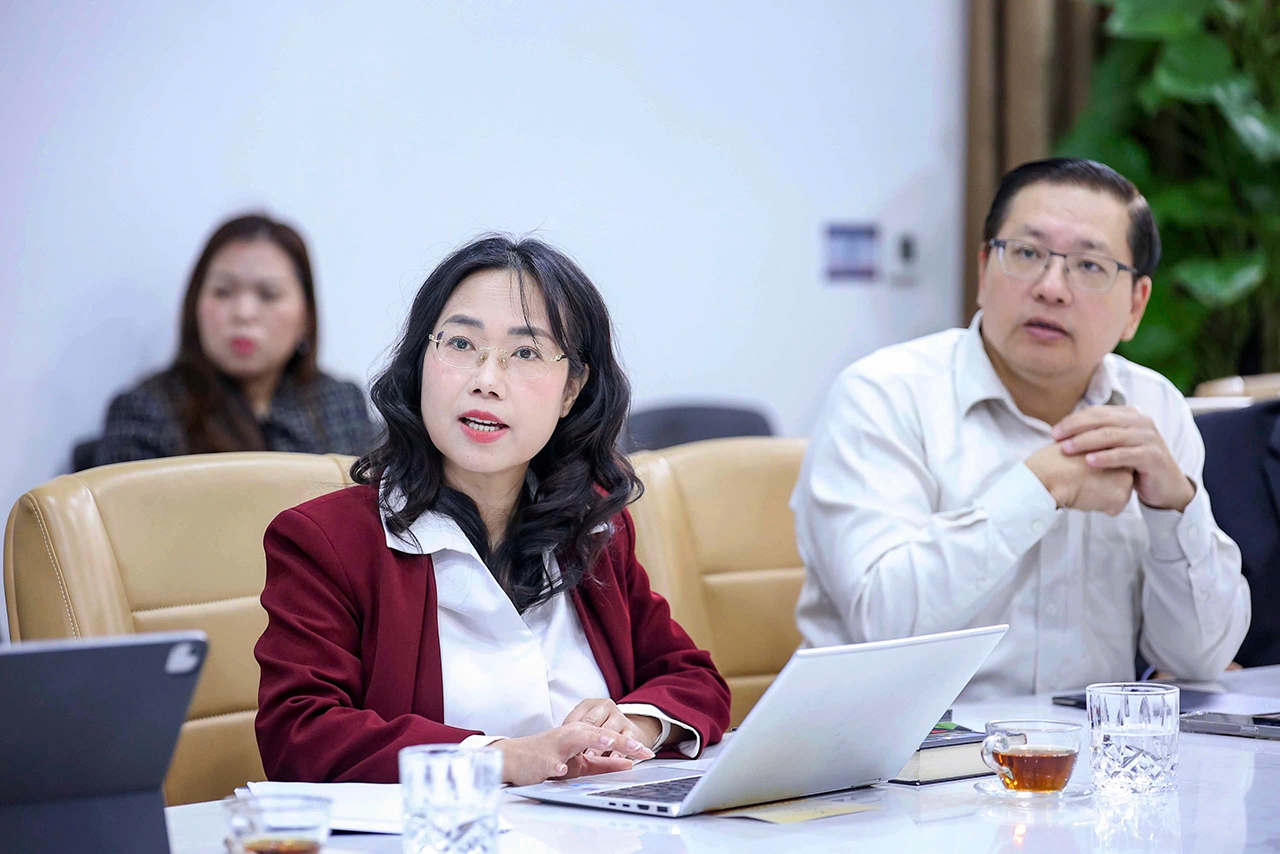 TS Lê Mai Lan trong một cuộc họp (bên phải là GS Tan Yap Peng, Hiệu trưởng Trường ĐH VinUni)