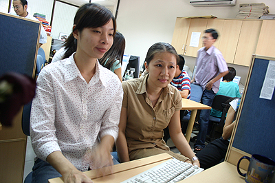Chị Phan Thị Cẩm Ly (bìa trái) - Trưởng phòng truyền thông - Công ty Tiếp thị Truyền thông AVC và chị Nguyễn Thị Hải Hà (bìa phải) - giám đốc Marketing Vietnamworks đang trả lời trực tuyến các câu hỏi của bạn đọc. Ảnh Đào Ngọc Thạch |