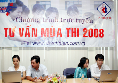Các khách mời đang giải đáp các thắc mắc trực tuyến cho thí sinh. |
