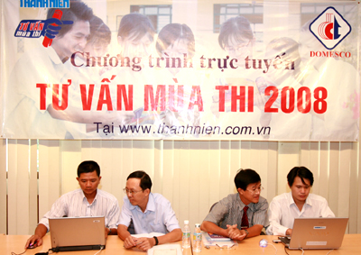 Các khách mời đang tư vấn trực tuyến cho các thí sinh. |