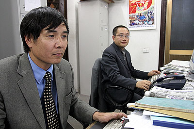 TS Lê Trường Tùng (trái) và ông Nguyễn Xuân Phong đang trả lời trực tuyến các câu hỏi của bạn đọc. Ảnh Trường Sơn |