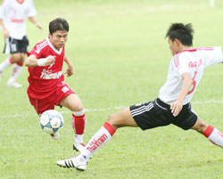| Bình Định (đỏ) tự quyết được số phận của mình trong trận cầu đối kháng với ĐTLA |