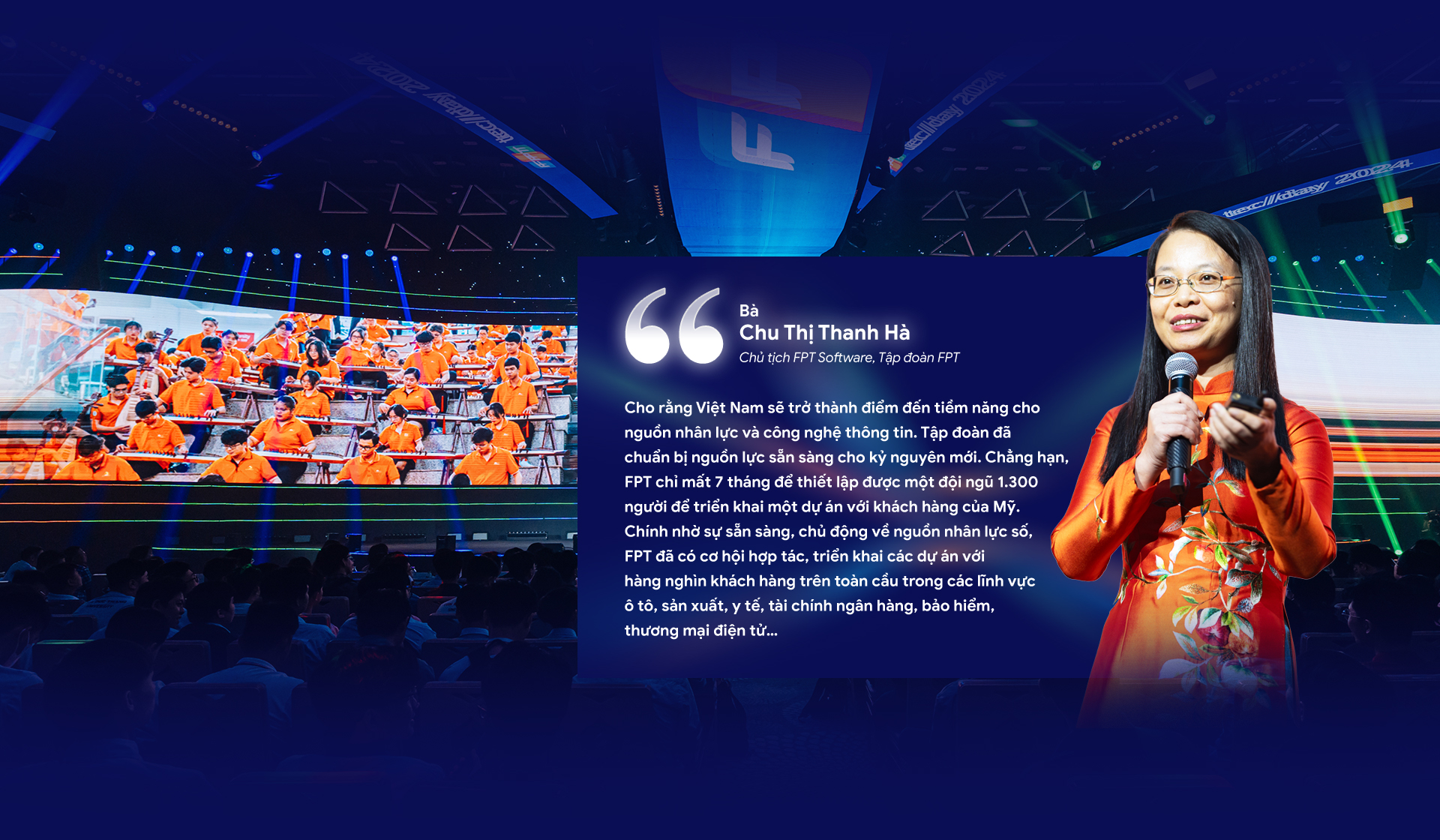 Chỉ riêng Tập đoàn FPT, hiện có hơn 80.000 nhân sự và đang phấn đấu đạt con số 1 triệu nhân sự vào năm 2035. FPT đã hợp tác với các ông lớn trong đào tạo trí tuệ nhân tạo (AI) gồm Nvidia, Landing AI, Mila. Đưa AI vào đào tạo học sinh từ lớp 1 đến lớp 12, mở khoa đào tạo AI, bán dẫn…