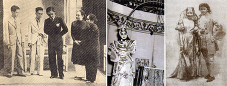 Phùng Há trong Khúc oan vô lượng (ảnh trái), trong vai Lữ Bố vở Phụng Nghi Đình (ảnh giữa), cùng Năm Phỉ trong vở Sĩ Vân công chúa (ảnh phải) |