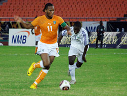Tuấn mã Burkina Faso hầu như không có cơ hội khi đối mặt với Voi rừng Bờ Biển Ngà trong trận đấu mở màn bảng B giải CAN 2010.