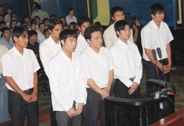 Sau thủ tục khai mạc phiên toà, Chủ tọa phiên tòa Lê Văn Ban đã tiến hành kiểm tra lý lịch nhân thân của từng bị cáo. Công tố viên Nguyễn Hồng Lạc dành gần một tiếng đồng hồ để công bố bản cáo trạng do Viện KSND tối cao ký ngày 25.12.2006.