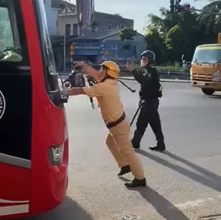 Triệu tập tài xế điều khiển xe khách đẩy CSGT rồi tăng ga bỏ chạy