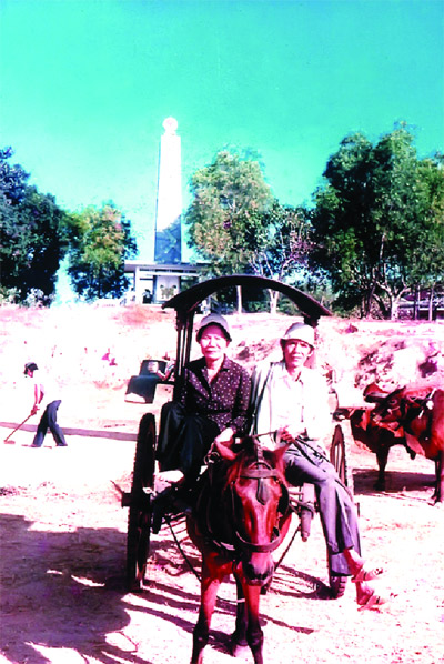 | Nhạc sĩ Lư Nhất Vũ, nhà thơ Lê Giang trên xe thổ mộ trong chuyến đi tiền dã tại Bình Dương (1987) |