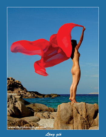 Để câu chuyện bớt nặng nề, tôi hỏi anh về một bức ảnh anh đã gửi cho tôi xem, bức Lộng gió. Cô gái hai tay cầm mảnh vải đỏ, đứng hiên ngang giữa trời, đất và biển. Màu xanh của biển, của trời, màu da trắng hồng của thiếu nữ, màu đỏ của tấm vải tạo sự đối nghịch về màu sắc. Và với dáng đứng dũng cảm của cô gái, như một sự thách thức của cái đẹp hình thể mềm mại của con người đối với sự dữ dằn mạnh bạo của thiên nhiên. Bức ảnh được chụp tại Hòn Quy, Phan Rang. Bữa đó biển yên, Thái Phiên cùng một nghệ sĩ nhiếp ảnh khác và người mẫu thuê riêng một tàu đáy kính xem san hô để ra Hòn Quy. Vì tàu đáy kính chẳng thể vào bờ được nên ông chủ tàu đưa từng người và đồ nghề lỉnh kỉnh lên thuyền thúng, sau đó tàu quay lại đất liền, tới chiều mới đón. Trên Hòn Quy, đúng là một ngày lộng gió thật, người mẫu khỏa thân hồn nhiên đi lại, nghệ sĩ thoải mái sáng tác. Không có một ai dòm ngó. Cuối cùng Thái Phiên đã có 4-5 bức hình ưng ý vào ngày hôm đó.
