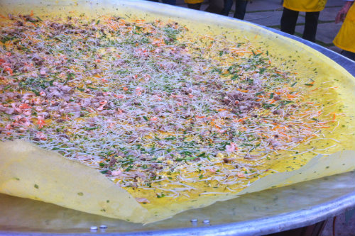 Chiếc bánh xèo có trọng lượng gần 10 kg với đường kính 2 mét - Ảnh: Nguyên Nguyễn |