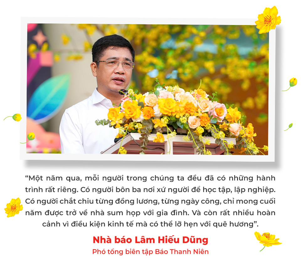 Chủ đề năm nay "Gác bôn ba, về nhà đón Tết" là mong ước chung của rất nhiều người đang ngồi tại đây. Gác lại những chuyến đi xa, những ca làm kéo dài, những nỗi lo chưa kịp gọi tên… để trở về nhà.